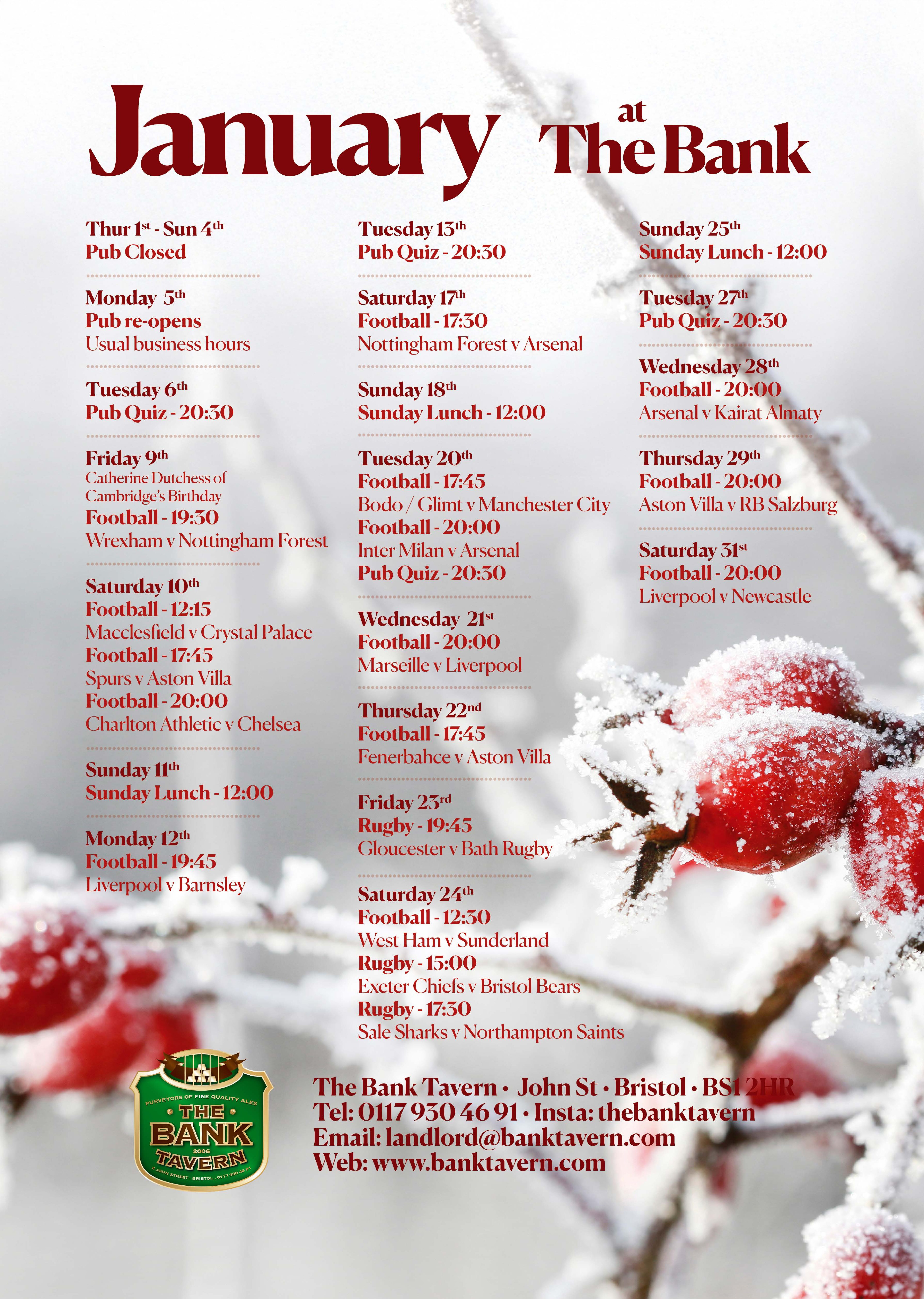 Every Tuesday we have our quiz with a rolling cash jackpot and all are welcome. Quiz night starts at 8.30pm sharpish! Tables cannot be reserved so arrive early to ensure your team gets a seat!